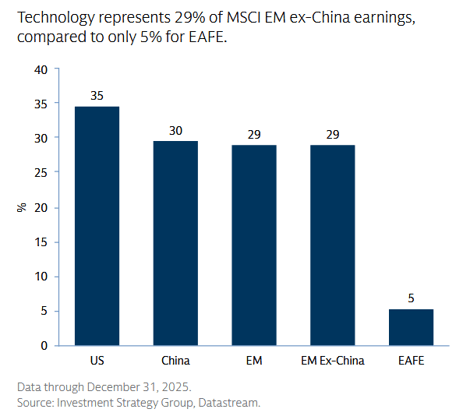 Lastly, beyond their general higher growth relative to developed markets, emerging markets are leading in AI and chip innovation outside of the United States.