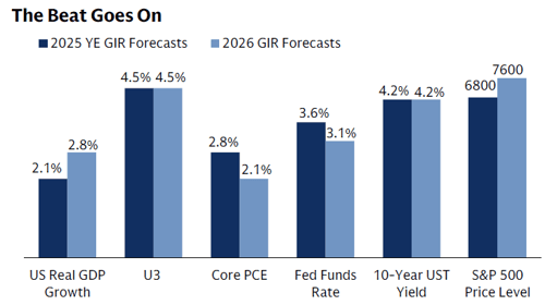 At this point, the path of interest rates remains highly uncertain, and credit spreads are more likely to widen. The market is currently pricing in two Federal Funds Rate cuts in 2026, but longer-term rates will depend on a range of factors, including the debt-to-GDP ratio. Developments such as AI’s economic impact, recessions, and geopolitical shocks could shift the macro backdrop and drive rates meaningfully higher or lower.