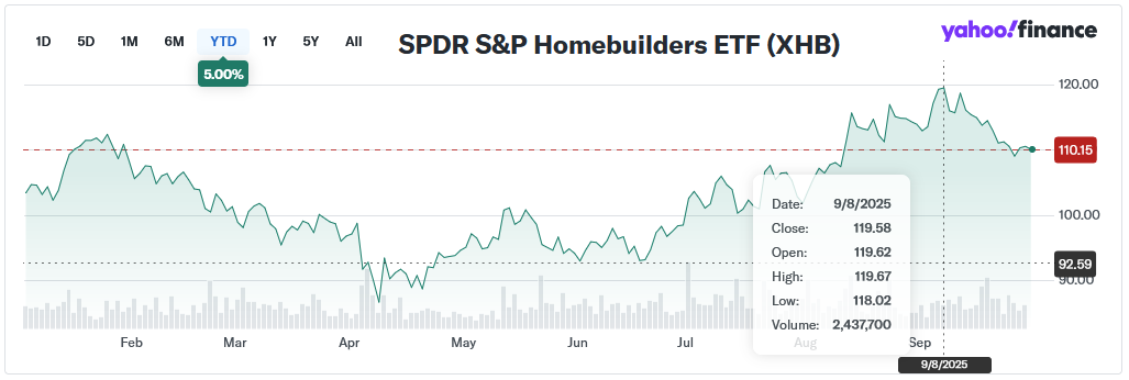 With job market weakness not reflected in the broader economy, financial markets have moderated their expectations for future rate cuts (proxied by homebuilder performance) following the Fed’s September move.