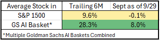 Investors continue to chase themes, and returns remain highly disparate, with certain sought-after pockets of the market outperforming others (chart performances as of 9/26/2025).