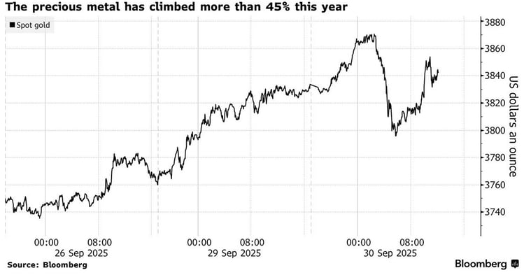 Driven by concerns over U.S. debt growth, gold received another boost from government shutdown volatility, reaching a record high in September.