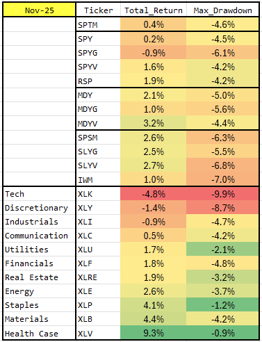 All market segments suffered drawdowns in November, but a V-shaped recovery helped recoup some of the losses.